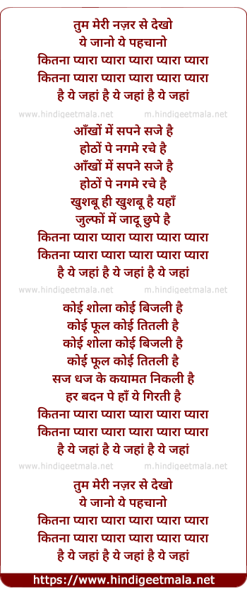 Lyrics of Tum Meri Nazar Se Dekho - तुम मेरी नज़र से देखो
