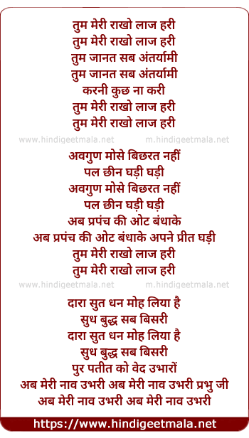 Lyrics of Tum Meri Raakho Laaj Hari, Tum Jaanat Sab - तुम मेरी राखो लाज हरी, तुम जानत सब