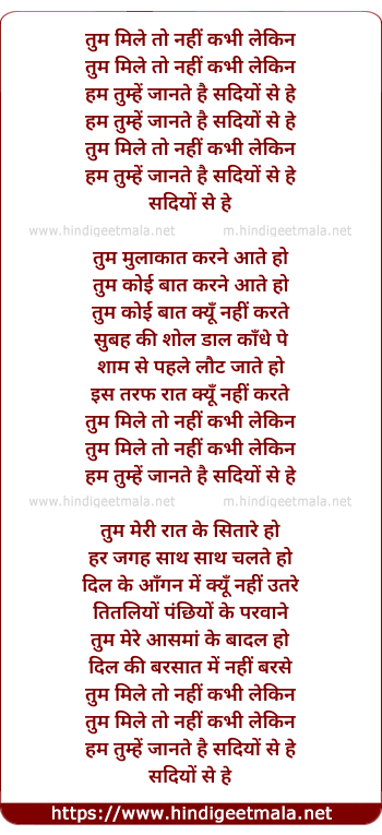 Tum Mile To Nahi - तुम मिले तो नहीं