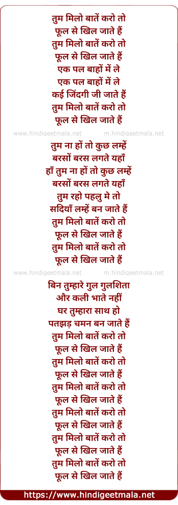 Poetic Translation - Lyrics of Tum Milo Bate Karo To - तुम मिलो बातें करो तो