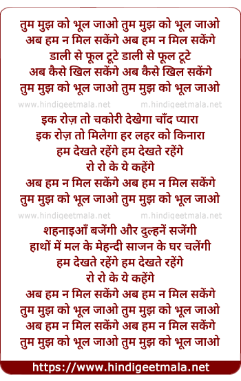 Lyrics of Tum Mujhko Bhul Jao - तुम मुझको भूल जाओ
