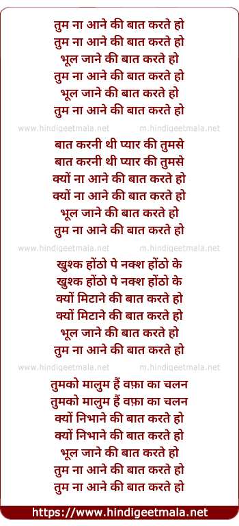 Lyrics of Tum Na Aane Ki Baat Karte Ho - तुम ना आने की बात करते हो
