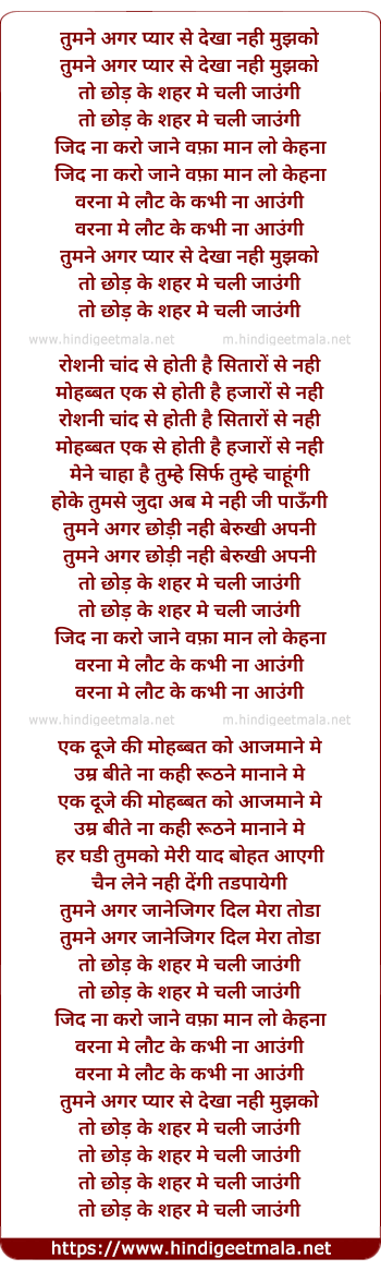 Lyrics of Tum Ne Agar Pyar Se Dekha Nahi Mujhko - तुमने अगर प्यार से देखा नही मुझको