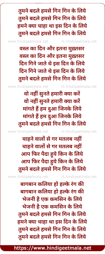 tumne badle humse gin gin ke liye