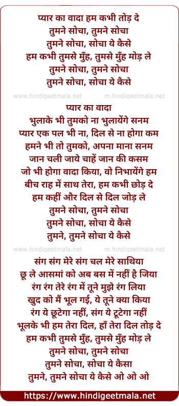 Lyrics of Tum Ne Socha Socha Yeh Kaise - तुम ने सोचा सोचा ये कैसे