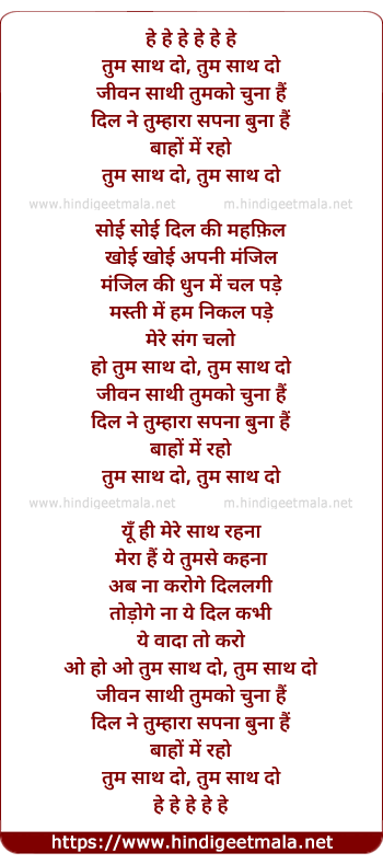 Lyrics of Tum Saath Do - हे हे हे हे हे हे