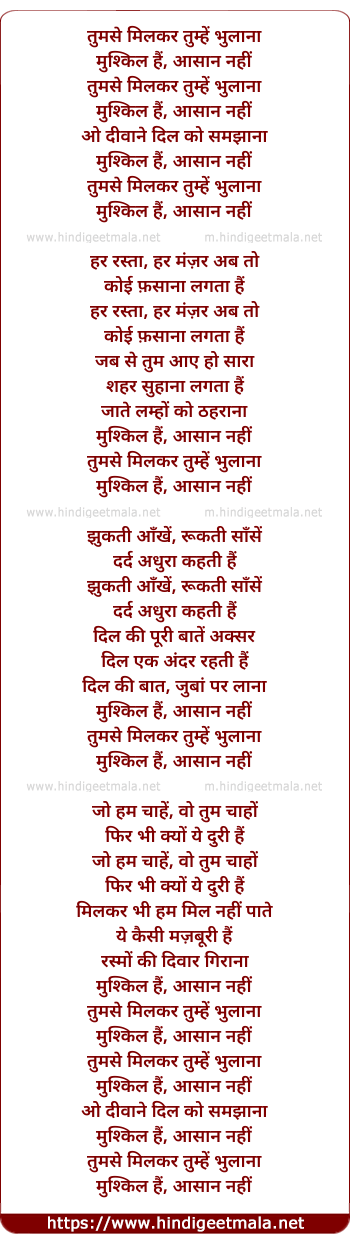 Poetic Translation - Lyrics of Tum Se Milkar (Female) - तुमसे मिलकर तुम्हें भुलाना