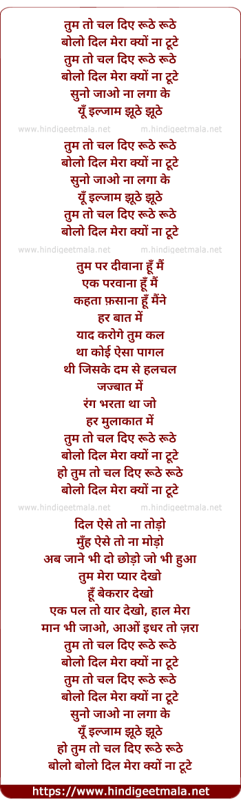 Lyrics of Tum To Chal Diye - तुम तो चल दिए