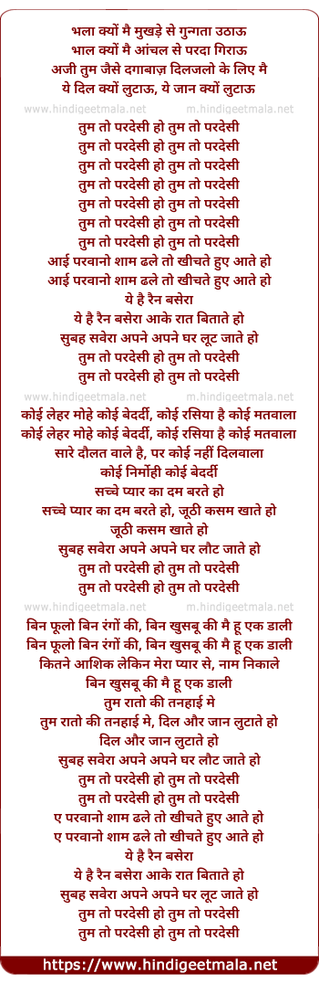 Lyrics of Tum To Prdesi Ho Tum To Pardesi - तुम तो परदेशी हो तुम तो परदेशी