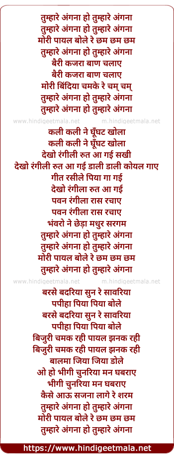 Lyrics of Tumhare Angna Ho Tumhare Angna - तुम्हारे अंगना हो तुम्हारे अंगना