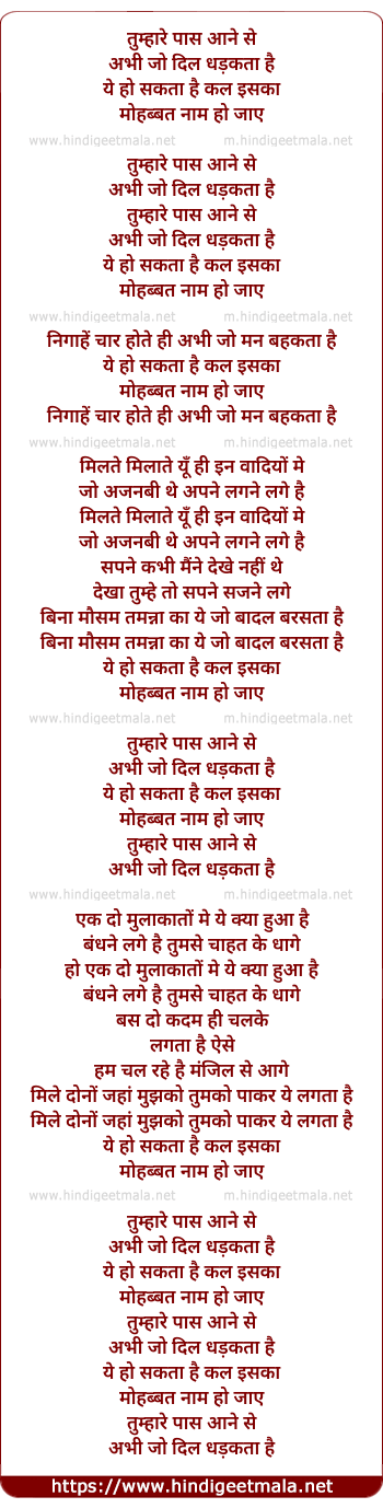 Lyrics of Tumhare Paas Aane Se - तुम्हारे पास आने से
