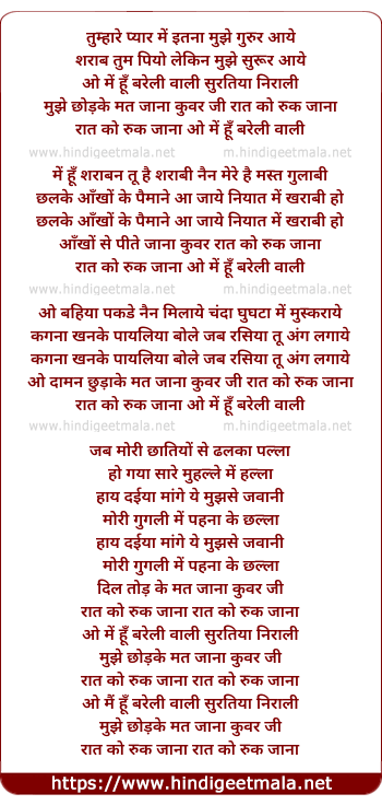 Lyrics of Tumhare Pyar Me (Mai Hu Bareliwali) - तुम्हारे प्यार में इतना