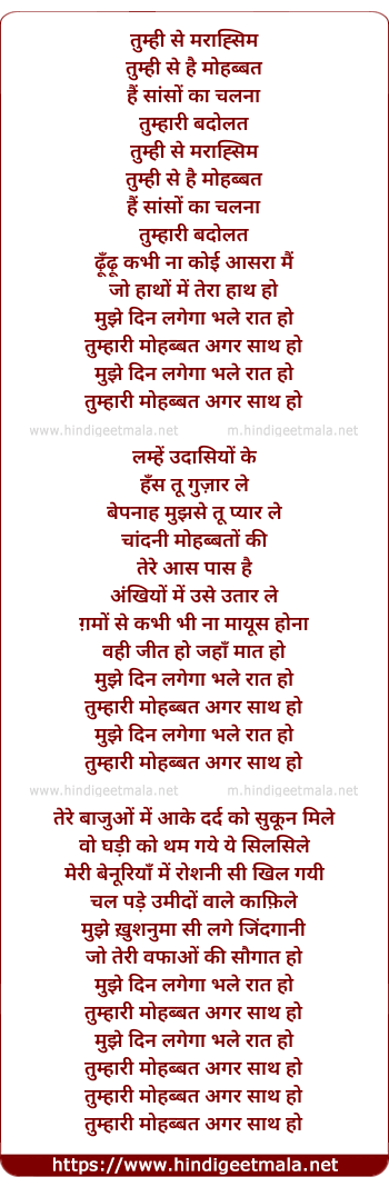Lyrics of Tumhari Mohabbat - तुम्ही से मराह्सिम