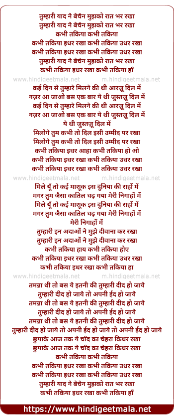 Lyrics of Tumhari Yaad Ne Bechain Mujhko Raat Bhar Rakha - तुम्हारी याद ने बेचैन मुझको रात भर रखा