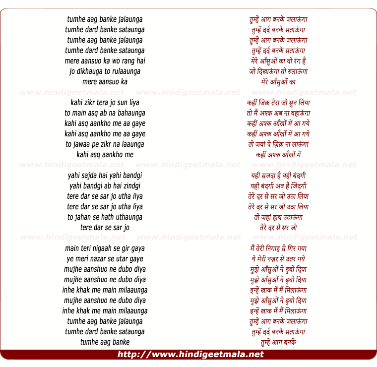 Comments for lyrics of song "Tumhe Aag Banke Jalaunga"