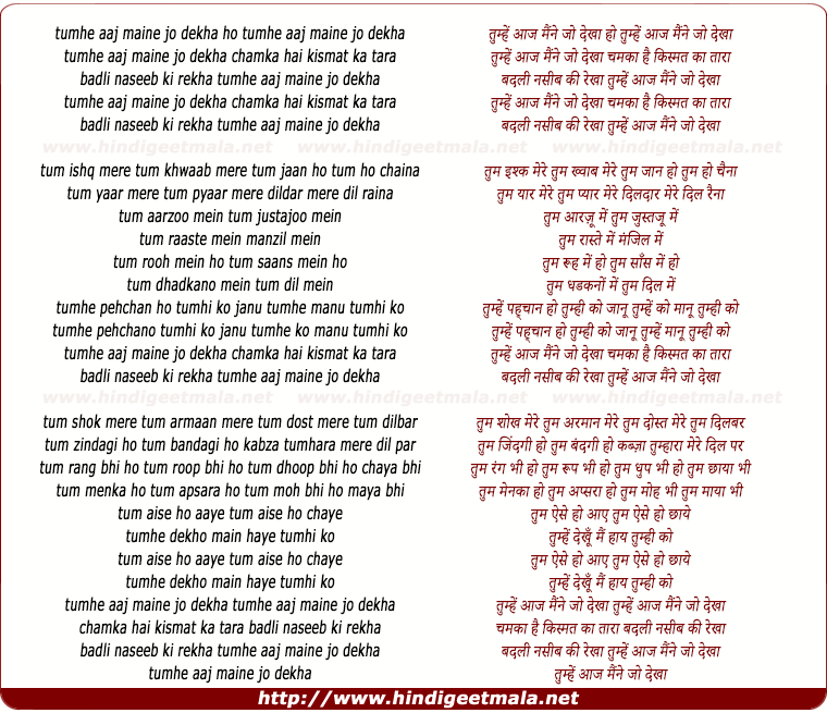 tumhe aaj maine jo dekha ho tumhe aaj maine jo dekha