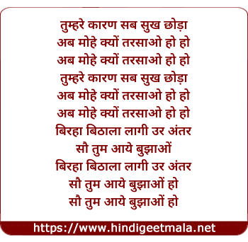 Lyrics of Tumhre Karan Sab Such Chhodya - तुम्हरे कारण सब सुख छोड़ा
