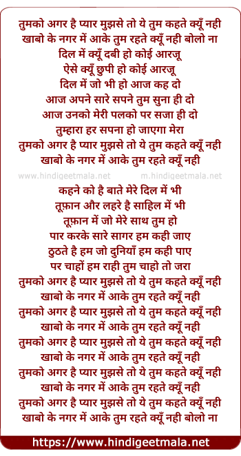 tumko agar hai pyar mujhse to ye tum kahte kyun nahi