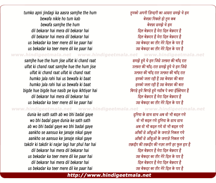 Lyrics of Tumko Apni Zindagi Ka Asra Samjhe The Hum - तुमको अपनी ज़िन्दगी का आसरा समझे थे हम
