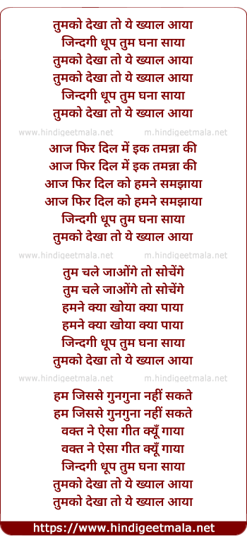 Lyrics of Tumko Dekha To - तुमको देखा तो ये ख्याल आया