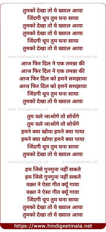 Lyrics of Tumko Dekha To Ye Khayal Aaya - तुमको देखा तो ये ख्याल आया