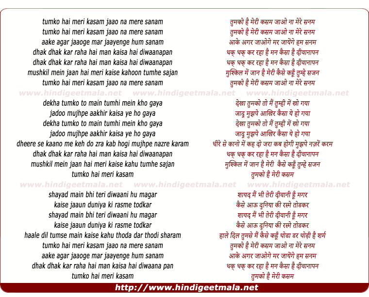 Lyrics of Tumko Hai Meri Kasam - तुमको है मेरी कसम