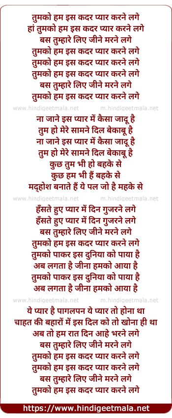 Lyrics of Tumko Ham Iss Kadar Pyaar Karne Lage - तुमको हम इस कदर प्यार करने लगे