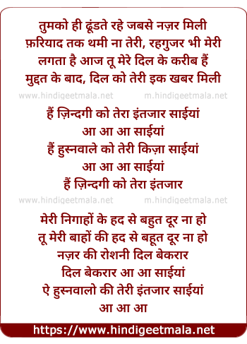 Lyrics of Tumko Hi Dhundte Rahe - तुमको ही ढूंडते रहे जबसे नज़र मिली