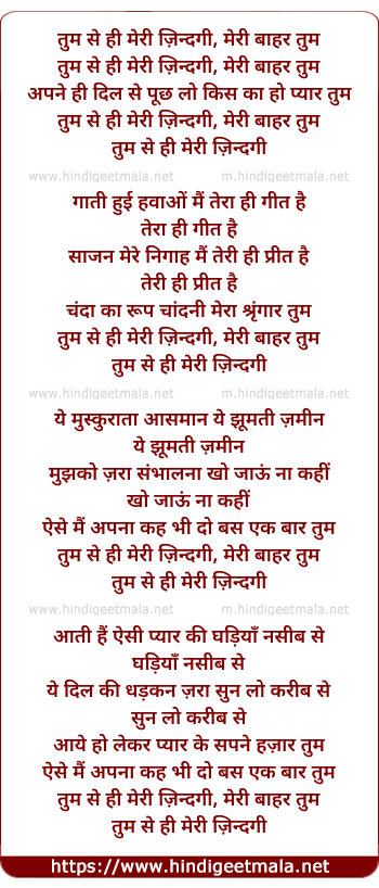 Lyrics of Tumse Hi Meri Zindagi Meri Bahar Tum - तुम से ही मेरी ज़िन्दगी मेरी बाहर तुम