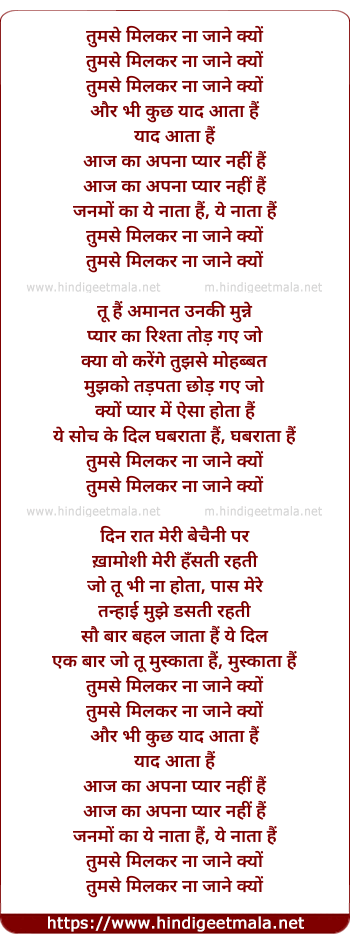 Lyrics of Tumse Milkar Na Jaane Kyun - तुमसे मिलकर ना जाने क्यों