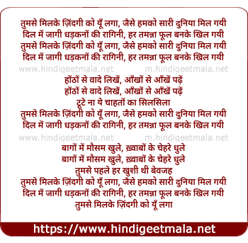 Lyrics of Tumse Milke Jindagee Ko Yu Laga - तुमसे मिलके ज़िंदगी को यूँ लगा
