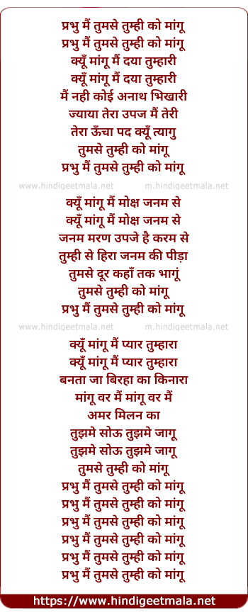 Lyrics of Tumse Tumhi Ko Mangu - प्रभु मैं तुमसे तुम्ही को मांगू