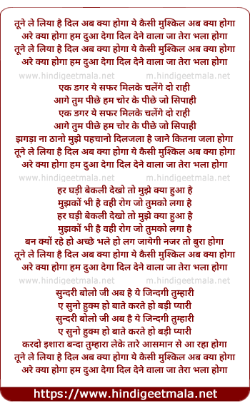 Lyrics of Tune Le Liya Hai Dil Ab Kya Hoga Ye Kaisi Mushkil - तूने ले लिया है दिल अब क्या होगा ये कैसी मुश्किल