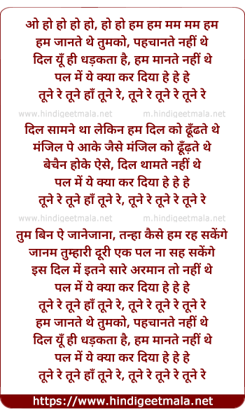 Lyrics of Tune Re Tune Haan Tune Re - तूने रे तूने हाँ तूने रे