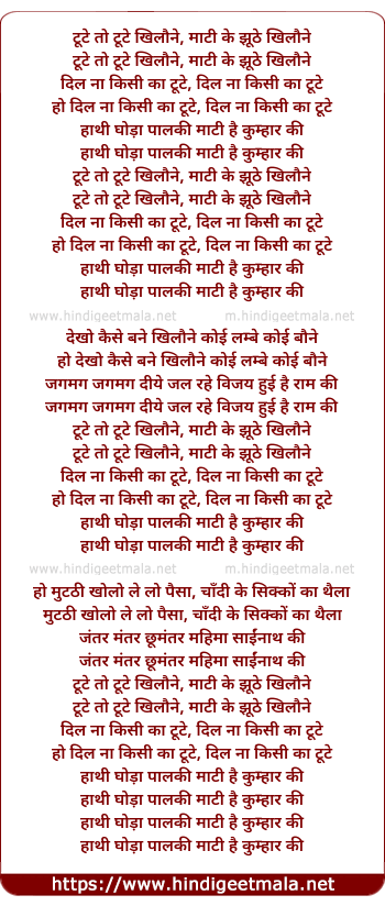 toote to toote khilaune, mati ke jhuthe khilaune