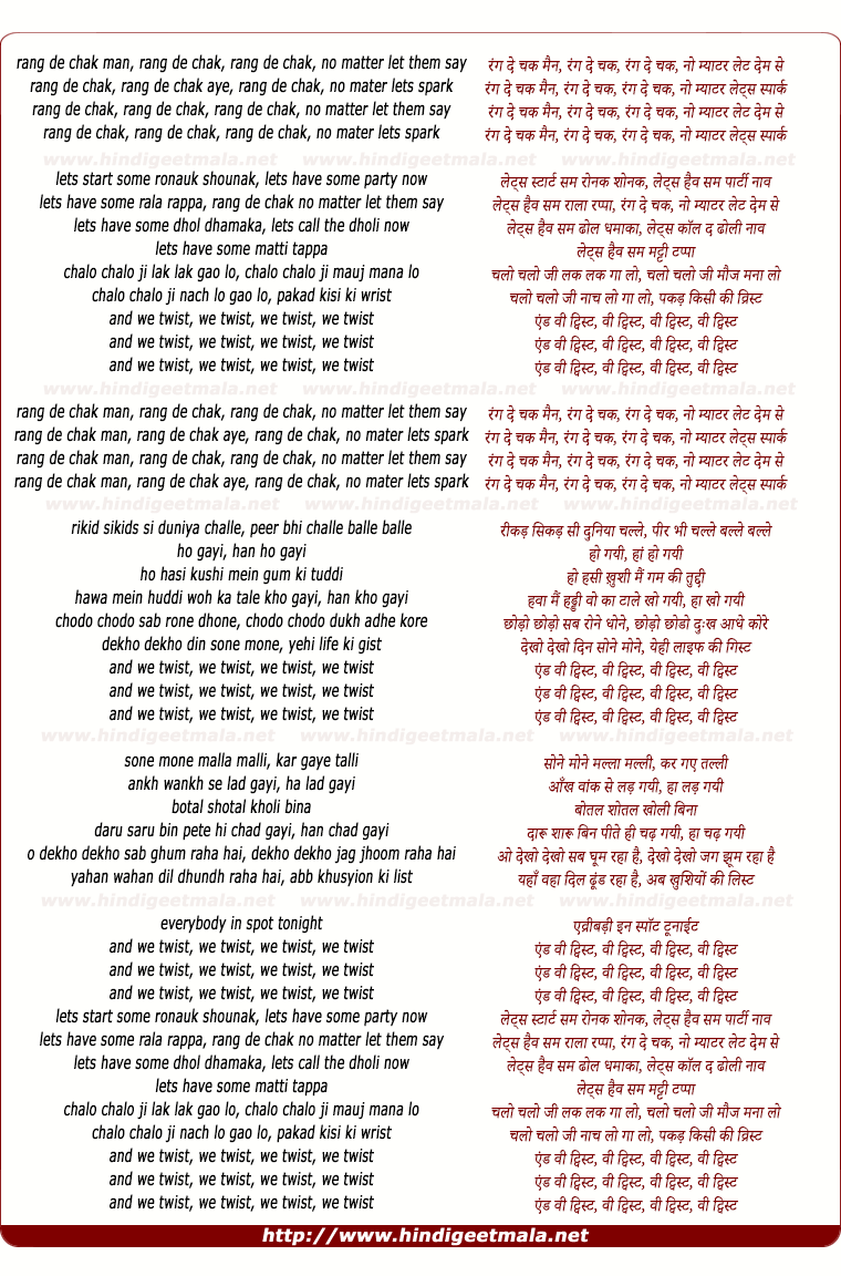 rang de chak man, rang de chak aye, rang de chak, no mater lets spark