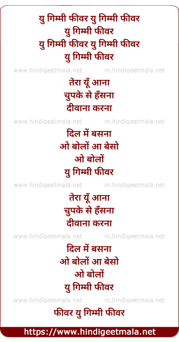 Lyrics of U Gimmi Fever - यु गिम्मी फीवर यु गिम्मी फीवर