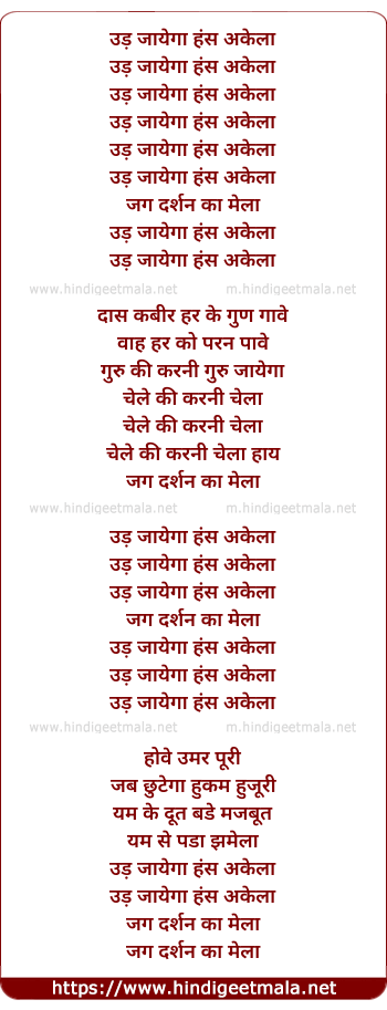 Lyrics of Ud Jaayega Hans Akela - उड़ जायेगा हंस अकेला