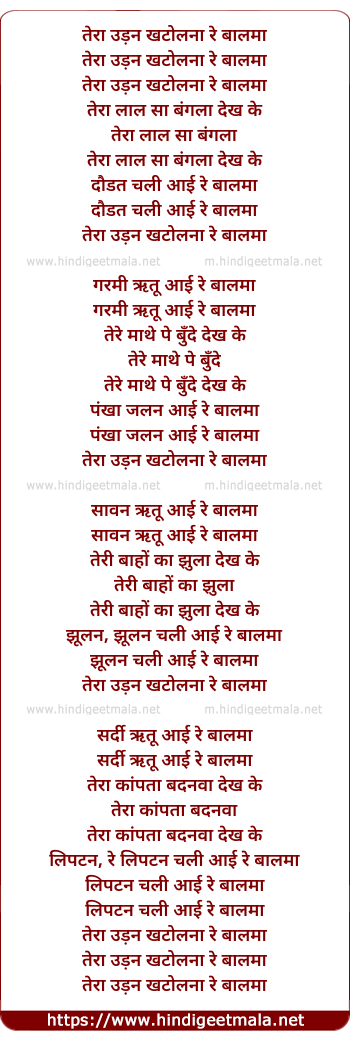 Lyrics of Udan Khatolna - उड़न खटोलना