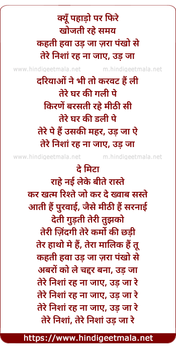 Lyrics of Udd Jaa - क्यूँ पहाड़ो पर फिरे