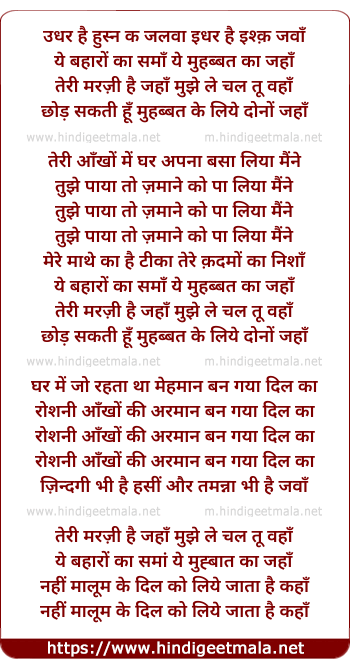 teri marazi hai jahaan mujhe le chal tu wahaan