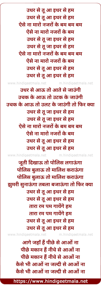 Lyrics of Udhar Se Tu Aa Idhar Se Hum - उधर से तू आ इधर से हम