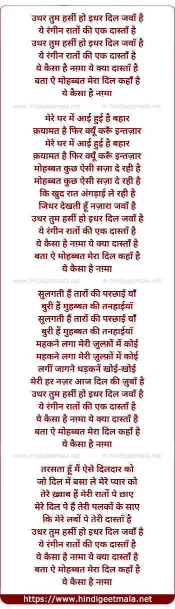 Lyrics of Udhar Tum Hasin Ho Idhar Dil Javaan Hai - उधर तुम हंसी इधर दिल जवां है