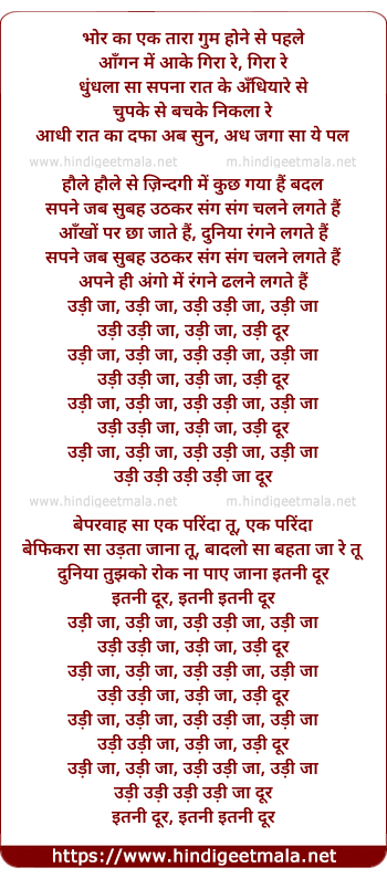 Lyrics of Udi Jaa - भोर का एक तारा गुम होने से पहले
