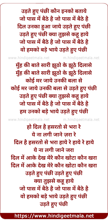 Lyrics of Udte Hue Panchhi Kaun Inko Bataye - उड़ते हुए पंछी कौन इनको बताये