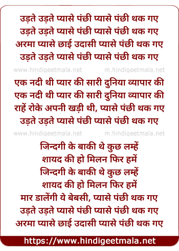 Lyrics of Udte Udte Pyase Panchi Pyase Panchi Thak Gaye - उड़ते उड़ते प्यासे पंछी प्यासे पंछी थक गए