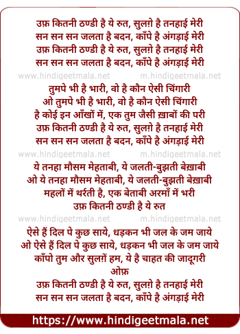 Lyrics of Uff Kitanee Thandee Hai Yeh Rut - उफ़ कितनी ठण्डी है ये रुत