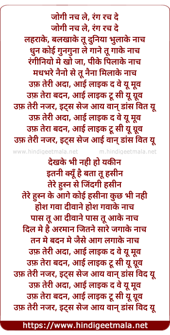 Poetic Translation - Lyrics of Uff Teri Adaa (Remix) - जोगी नच ले, रंग रच दे