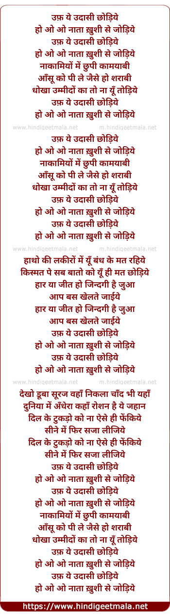 Lyrics of Uff Ye Udaasi Chhodiye - उफ़ ये उदासी छोड़िये