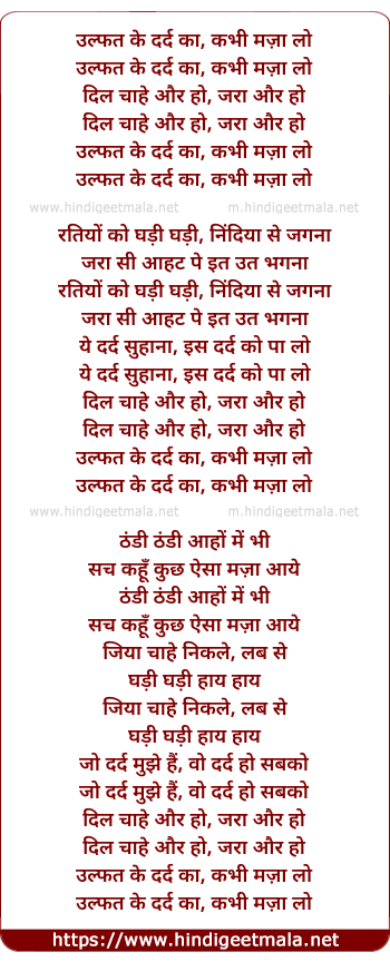 Lyrics of Ulfat Ke Dard Ka Kabhi Maza Lo - उल्फत के दर्द का, कभी मज़ा लो